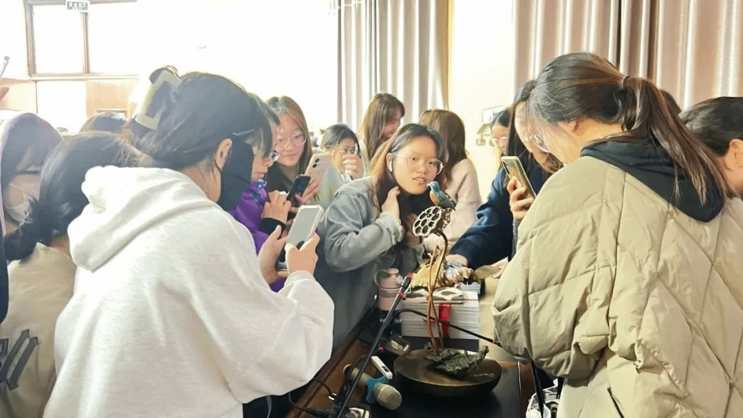 赵敏先生介绍了中国古代青铜焚失法铸造技艺的原理和历史地位、他带领铜官府公司团队发掘传承非遗技艺的过程,以及结合非遗技艺创作的“写真铜艺”作品,并且分享了自己的创作构思和创作心得,以自己对艺术创作和人生经历的思索,勉励老员工们不负韶华、努力学习、绽放才华。讲座过程中赵敏不时与师生进行互动交流,引发阵阵掌声。讲座结束后铜官府向bevictor伟德国际捐赠了赵敏主编的《写真铜艺》一书,同学们纷纷请赵敏签名。