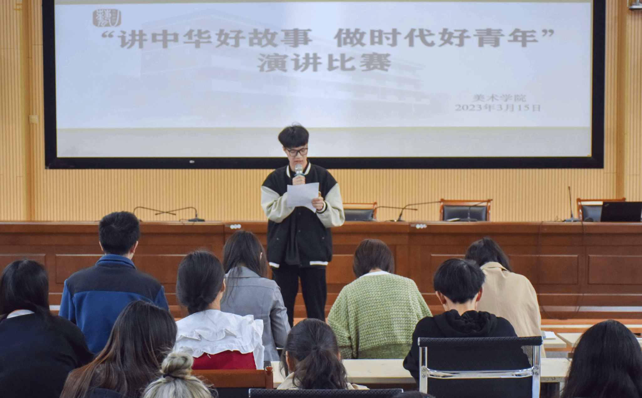 “生逢其时,我们当燃烧激情,挥洒热血,努力书写青年人奋斗篇章,不辜负伟大时代!”美术学专业2021级(2)班的朱陈浩以青年人视角,呼吁广大学子树立远大理想,厚植博爱情怀,坚定成为“世界青年人先锋”的勇气和决心,为实现中华民族伟大复兴而不懈奋斗。