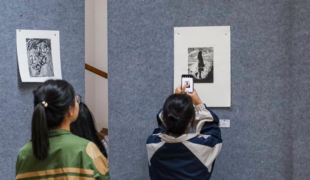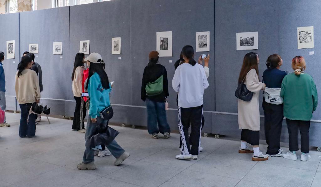 “本次活动希望能通过高年级同学的优秀作品来激发大家对艺术的热情。”指导老师陈小克介绍道,本次课业展包含人物、风景、建筑等众多主题。“同学们用刻刀和画笔以独特的艺术视角展现欣欣向荣的时代风貌,集中精力用心用情创作精品力作的精神非常值得大家学习。”