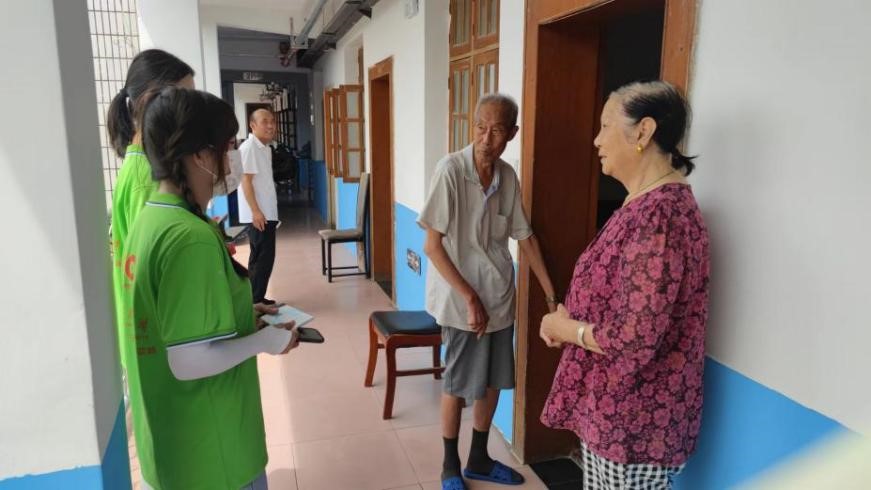 “爷爷好!这是给您的营养品。”“在这里生活的怎么样呀?”……为了对当地康养业有一个最基本直观的了解,团队成员与区政协委员一同来到了当地的养老院进行探访和慰问,给予老人温暖与陪伴的同时,为其送来了许多暖心的慰问品。来到养老院后,成员们逐一来到各楼层,与老人们一一进行交谈,不时用笑话逗老人们开心,阵阵爽朗的笑声在养老院的各个角落回荡。