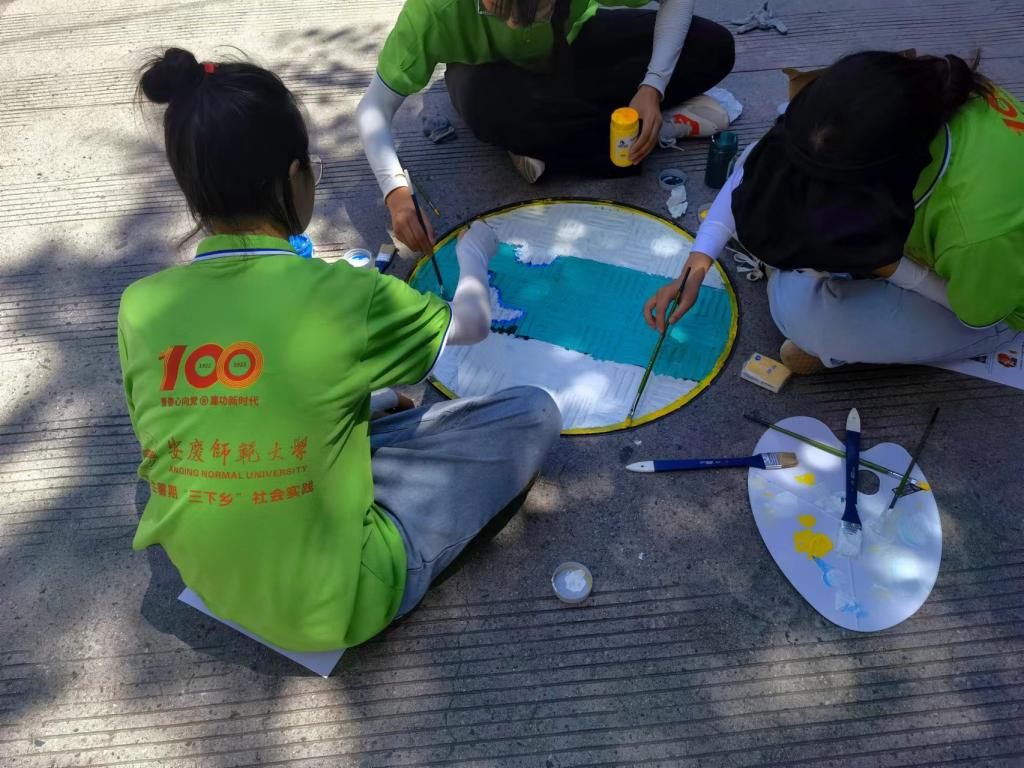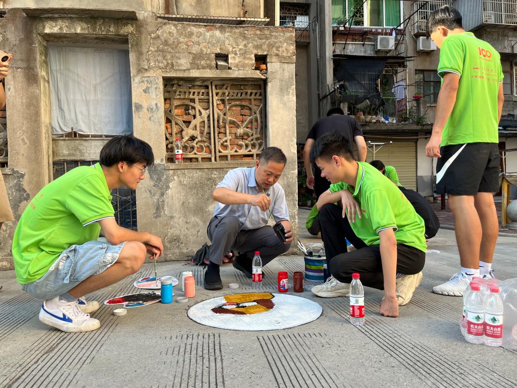 作为团队的“智囊团”,朱胜甲老师在出发前便对井盖画内容作出了指导,他表示,井盖画不仅是一个装饰品,更要让它在内容上“言之有物”,应植根社区特色,挖掘红色根基,创作出贴近民众生活、积极向上的作品,“7月1日正是建党节,在党的生日这一天,青年学子们更应发挥自身专业特长,以画作抒发自身感情,献礼建党101周年。”