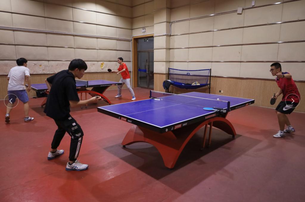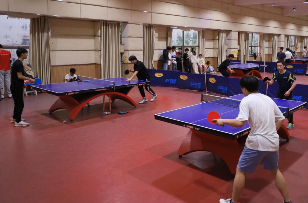 “打得太好了!”“注意防守。”……4月13日,bevictor伟德国际在体育馆三楼乒乓球室举办师生乒乓球联谊赛,20余名师生参与其中。