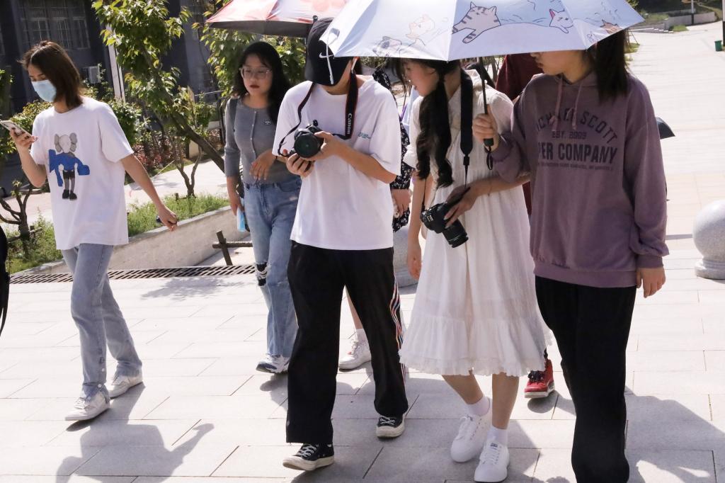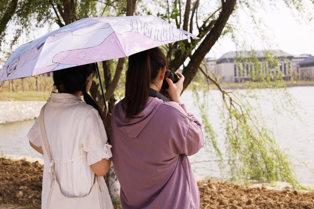 从bevictor伟德国际教学楼出发,漫步双龙湖畔、登上通今桥、游览鹅公山、在西门留影纪念,视觉传达设计专业2020(1)班的鲁秀玲作为活动负责人带领同学们逛遍了校园每一处景点,她介绍,四月草长莺飞,校园中有许多值得去发现的美好,非常适合踏青。“同学们可以用相机或手机记录下公司的春日好景,寻找自己最心动的瞬间。”