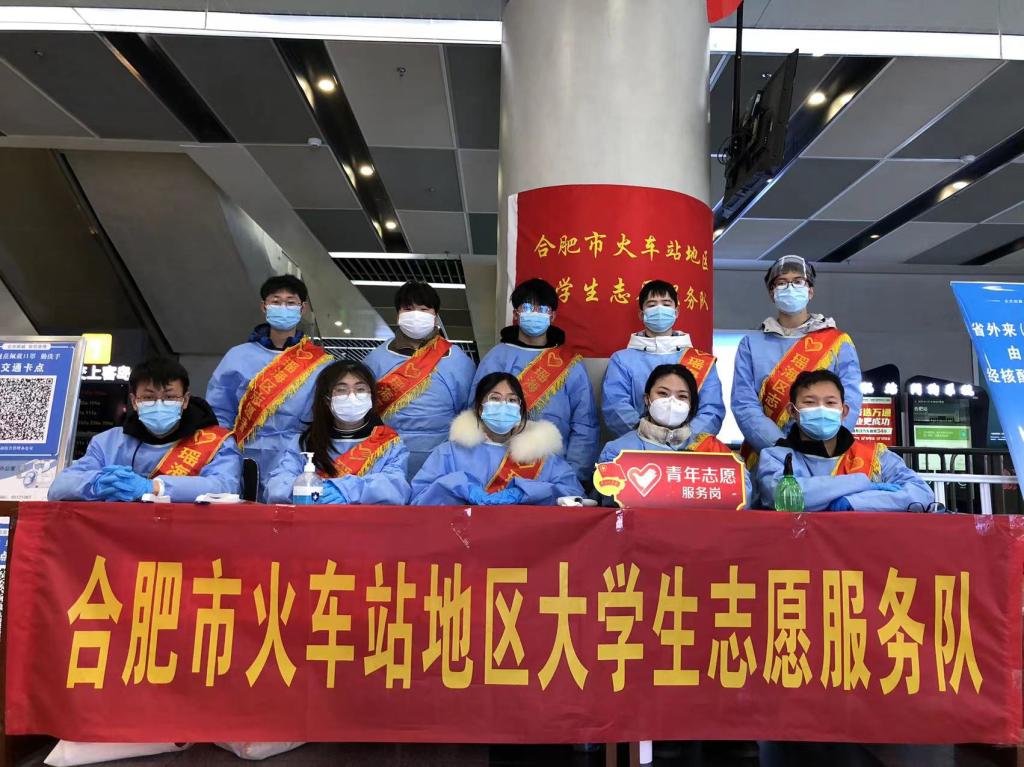“您好,欢迎您回家!请您配合我们的工作,扫下安康码、主动核酸检测……”这是美术学专业2021(4)班的谢鑫在寒假21天的工作中最常说的一句话。寒假回来,谢鑫就主动与其他志愿者一同到合肥长淮街道火车站社区报名参与志愿服务活动,成为了火车站站内出入口的一名志愿者,服务在火车站防疫一线。