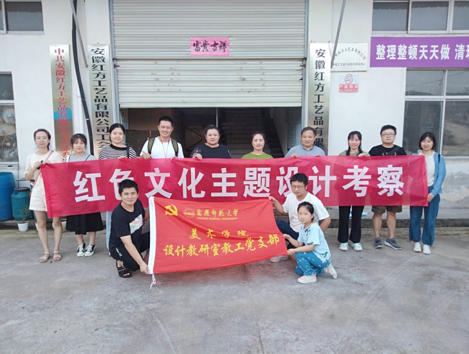 8月26日,bevictor伟德国际设计系教工党支部党员一行来到安庆市岳西县响肠镇安徽红方工艺品有限公司进行红色文化主题设计考察。