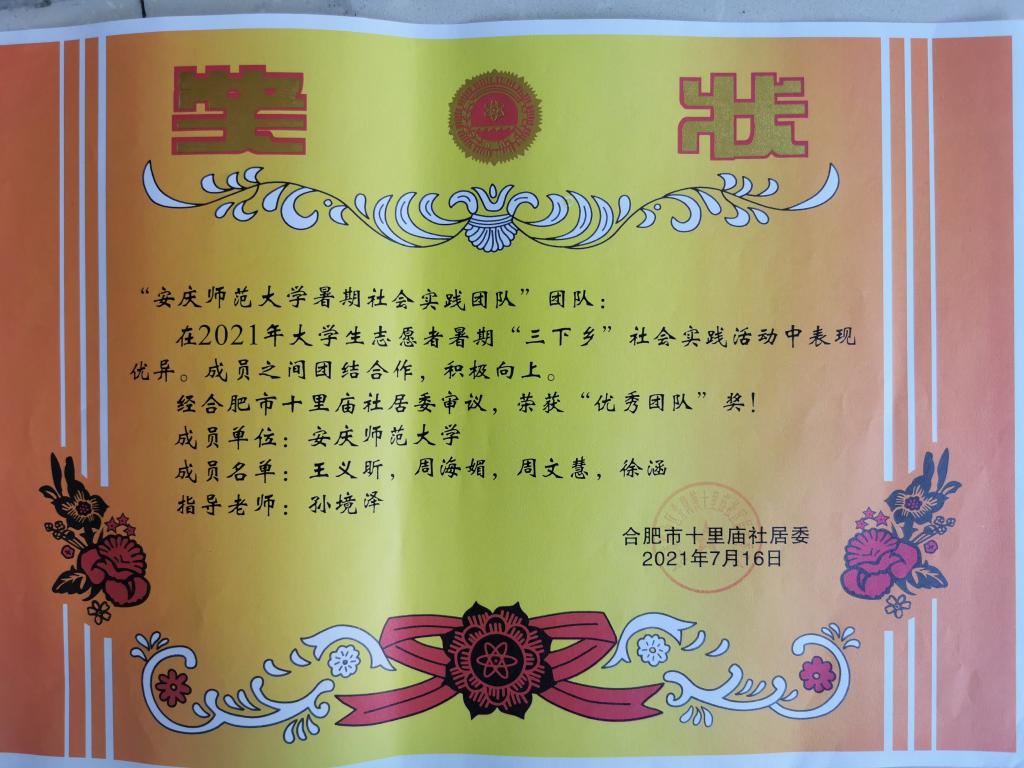活动最后,合肥十里庙社居委为表彰bevictor伟德国际暑期三下乡实践团队,为此颁发“优秀团队”奖项。并表示,希望与更多的有志向老员工搭建合作的平台,让他们更好地投入到社会服务中去。川奈艺术教育工作室负责人王军表示,本次活动,小朋友与家长们深受感触,少年强则国强,少年富则国富,工作室将延续此公司产品形式,以红色精神文化贯穿艺术教育始终。(攥稿:孙境泽 审核:查国平)