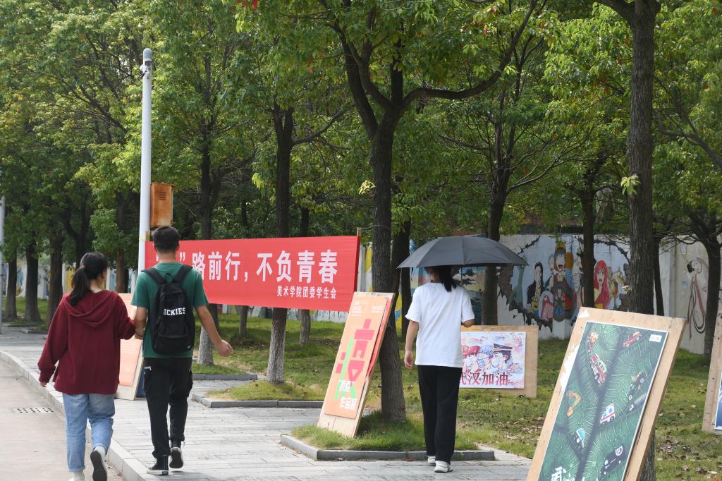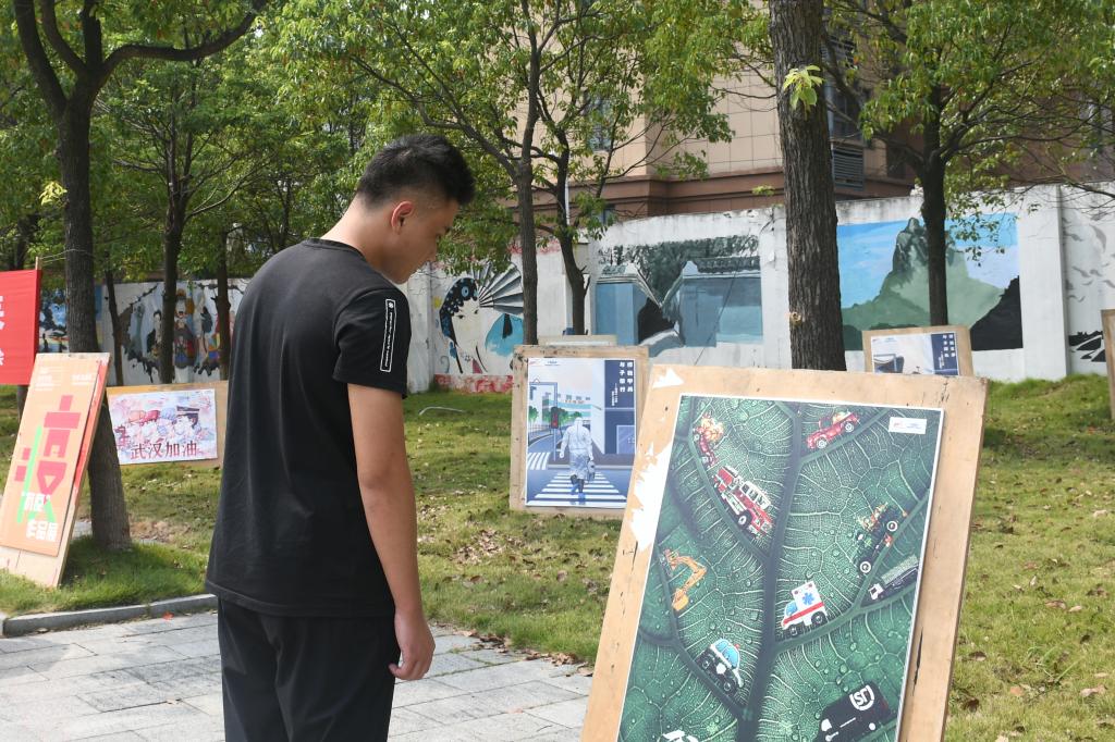 董文慧说,今天第一天开学,在公司保卫处任职的妈妈趁着换班时间带她一起熟悉校园环境时,自己被放在路边的海报作品所吸引。“学长学姐们用专业所学传达着战‘疫’精神,为全民战疫贡献着自己的力量,看到这些作品时我挺有感触的。”她表示,“我会在大学四年认真学习,将来用自己的能力做一个对社会有贡献的人。”