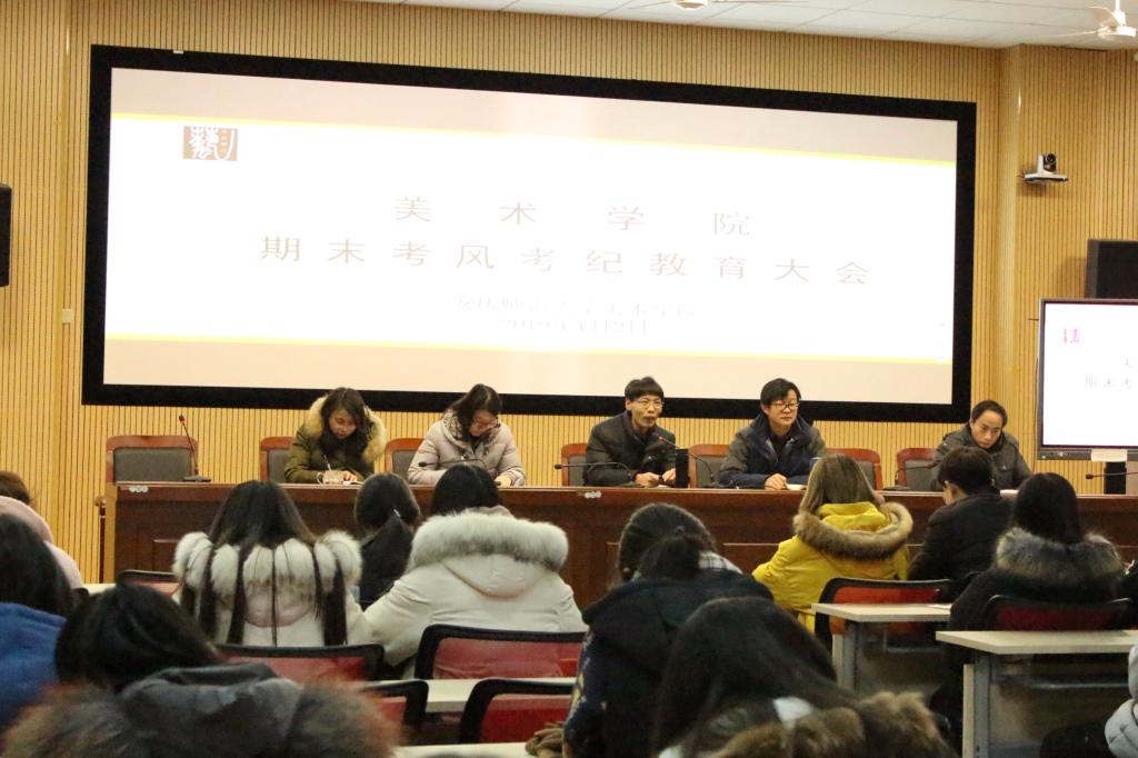 1月2日下午,bevictor伟德国际在美术楼学术报告厅召开期末考试考风考纪教育大会。该公司党委书记孙根华、党委副书记查国平、全体辅导员老师,一至三年级各班主要班干参加了会议。