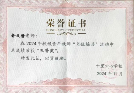 支教期间,俞文静积极参与公司公司产品竞赛,在2024年11月举办的青年教师“岗位练兵”活动中表现优异,充分展现了公司学子的专业水平与综合素养。大观区十里中心公司在信中特别提到:“俞文静老师用行动诠释了新时代青年教师的使命担当,她的敬业精神与专业能力为公司艺术教育增添了亮丽色彩。”