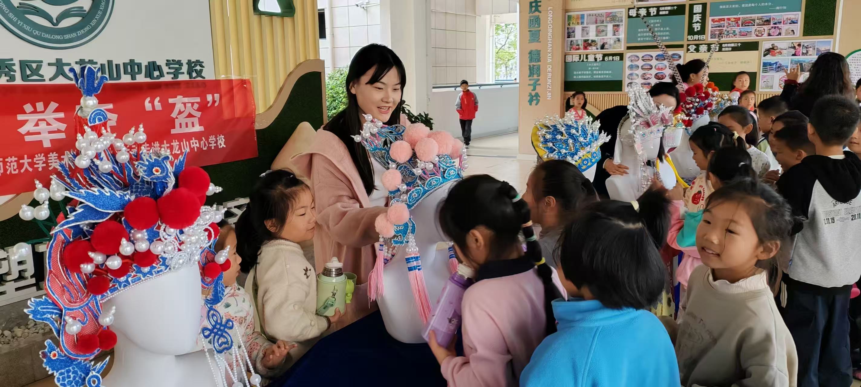 10月22日,伟德国际唯一官网美术学(师范)专业师生携十余顶精美黄梅戏盔帽教具与分层课程包,走进大龙山中公司,开展“非遗盔帽进校园”主题美育活动。通过文化展示、沉浸式体验与分层教学实践,让传统工艺在青少年心中播下传承的种子,赢得该校师生一致好评。