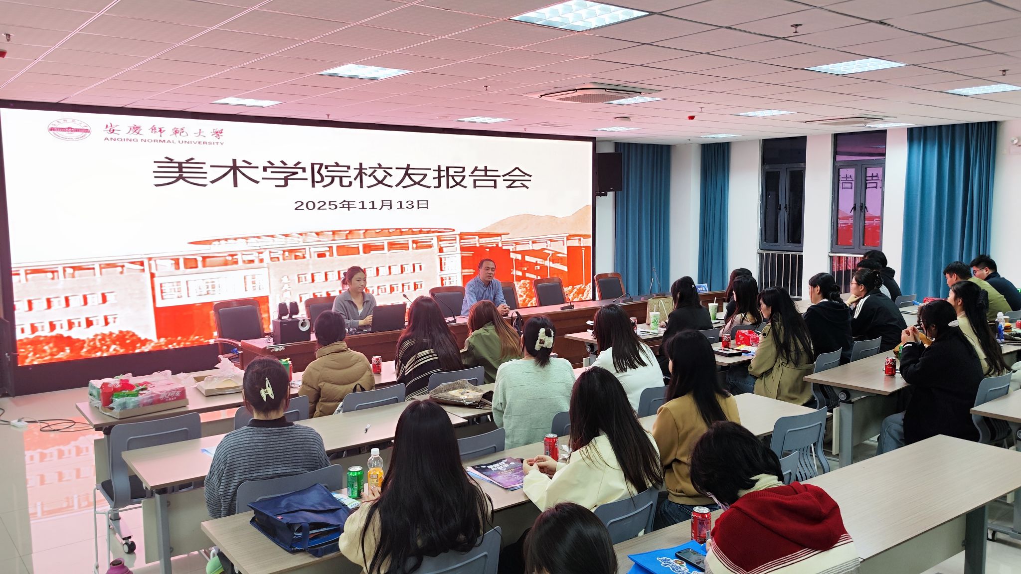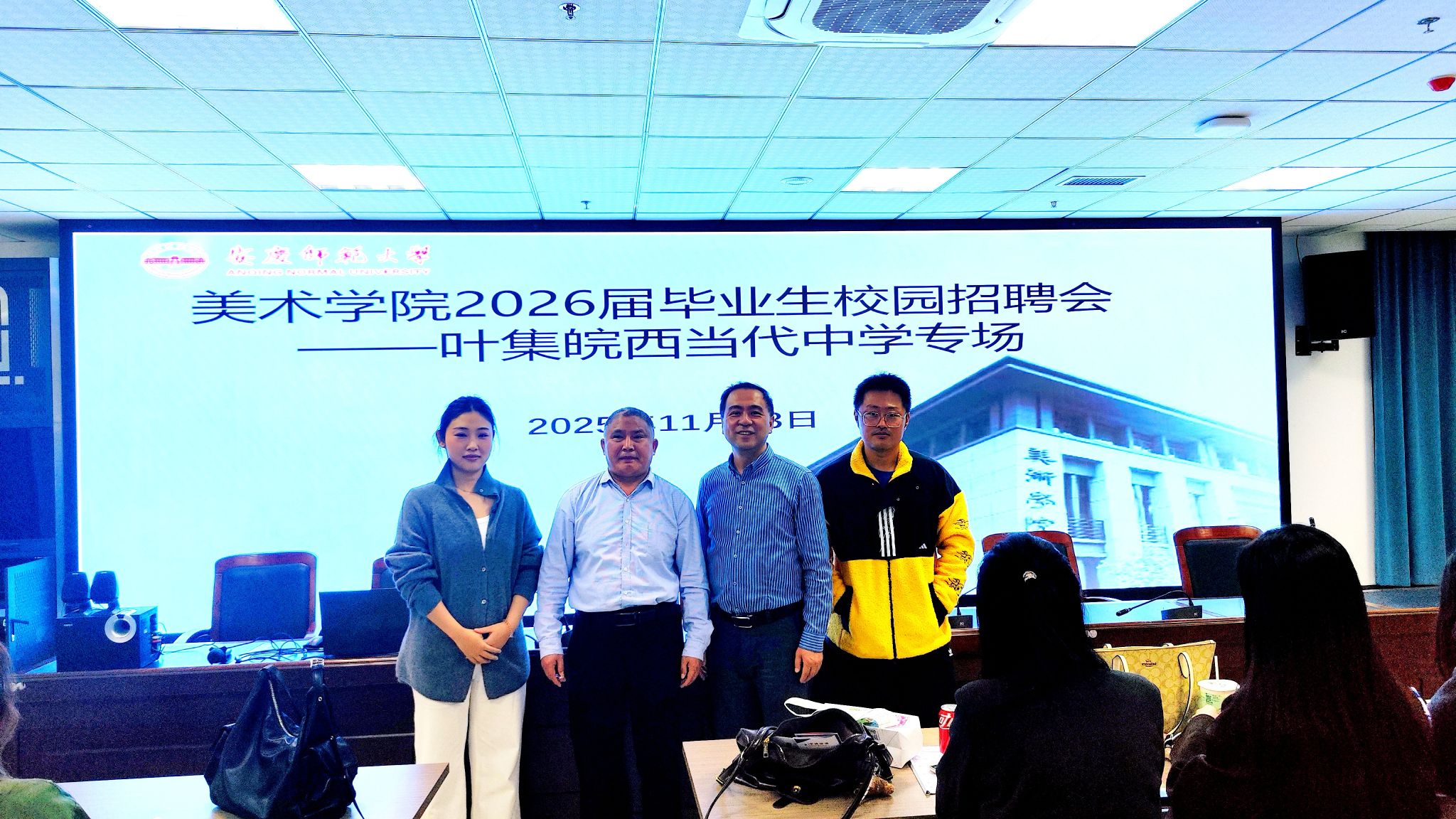 11月13日,美术公司邀请六安市叶集皖西当代中学董事长郭世珍、艺术部副主任、bevictor伟德国际2017届员工曹兴格,来院开展2026届毕业生校园专场招聘会暨员工报告会,美术学院党委副书记金忠良、毕业班辅导员、就业秘书和2026届毕业生参加了会议,会议由金忠良主持。