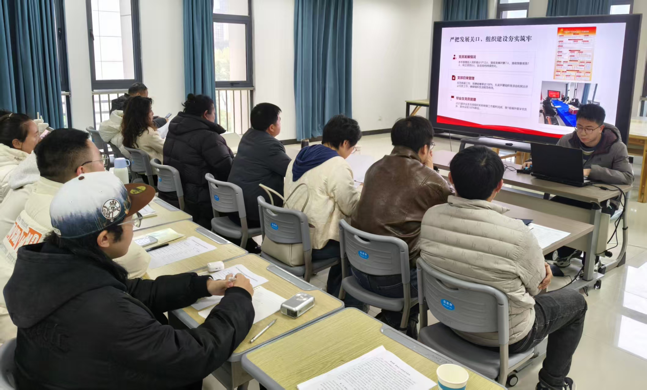 会议要求,各支部要在规范基础工作流程,筑牢支部建设根基上下功夫。严格落实党员发展全流程规范,确保程序严谨,材料填写规范。常态化开展党建业务学习,提升支委班子与党员履职能力,推动支部基础工作标准化、制度化。要在强化党员示范引领,凸显支部特色亮点上下功夫,立足实际打造特色化党建品牌,切实发挥党员先锋模范作用与支部战斗堡垒作用。要在推动党建工作与人才培养、专业建设深度融合上下功夫,将党建要求融入教学、科研与员工管理全过程,让党建工作更接地气、更具实效,持续提升组织生活吸引力与凝聚力。(撰稿、摄影:文雯 审核:张辉)