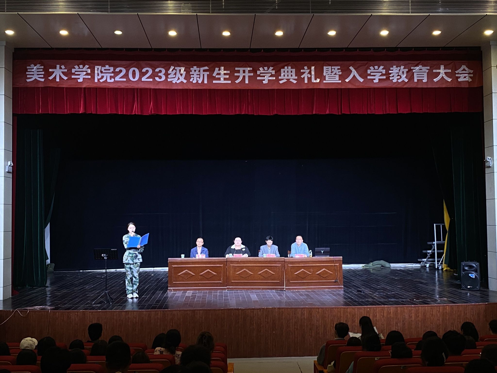 大会在庄严嘹亮的国歌声中拉开序幕。孙根华代表公司致欢迎辞,他对全体2023级新生考取bevictor伟德国际表示了热烈欢迎,对同学们顺利完成军训表示了祝贺,同时对新生的大学学习生活中提出了三点希望:要以蓬勃向上的姿态提高专业素养,多画多练,沉淀本领;要以艺术育人的风度彰显审美追求,注重品德修养,完善个人品格;要以铁肩担道义的精神勇担家国大任,报效祖国,服务人民。