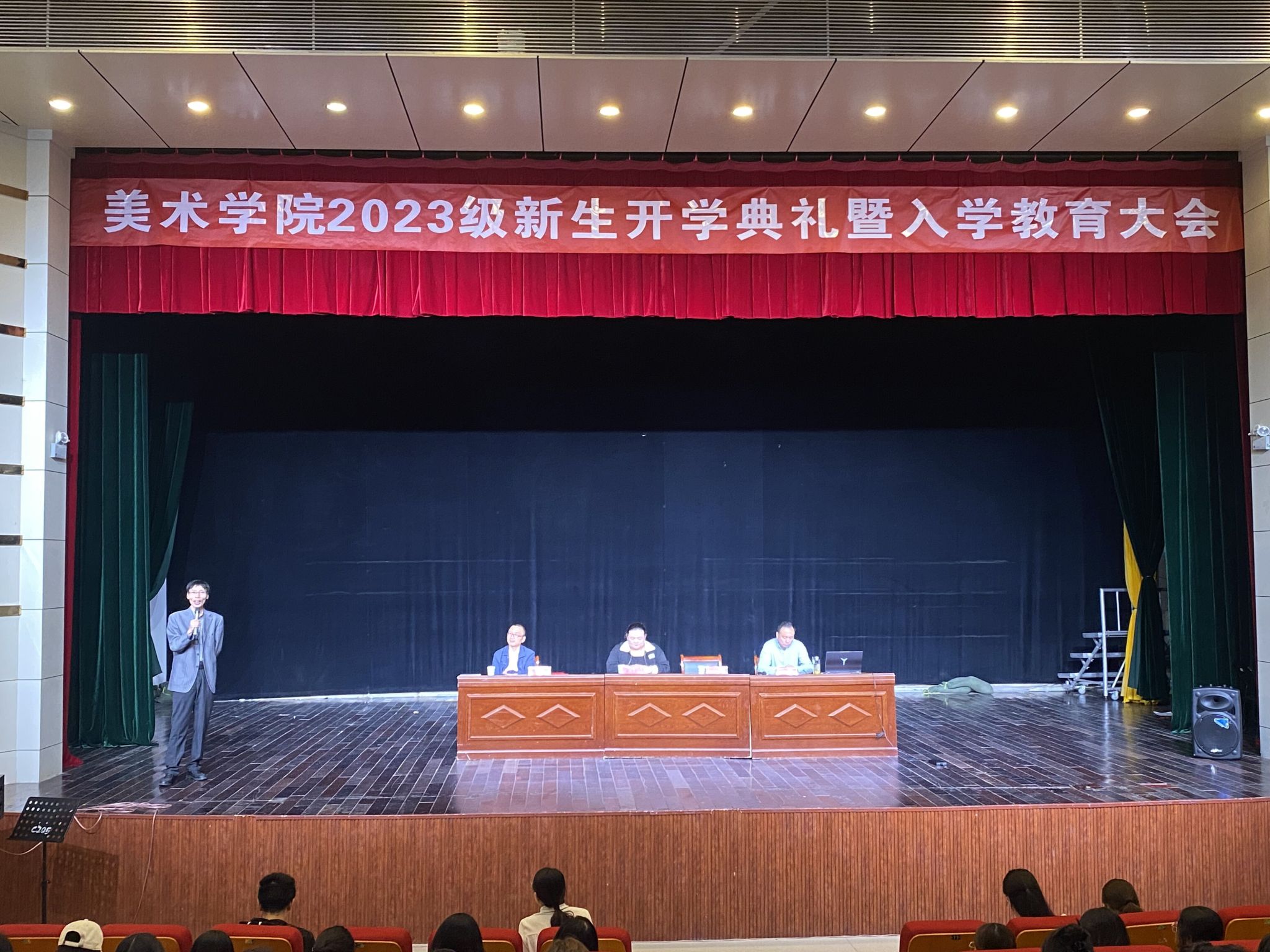 金忠良为2023级新生上了第一堂入学教育课。他带领大家学习了习近平总书记给安徽省潜山野寨中学新考取军校的同学们的重要回信精神,分享了公司正在部队服役的戏曲专业2020级硕士研究生吴振亚的学习体会,号召同学们要牢记习近平总书记对青年朋友的殷切嘱托,立志做有理想、敢担当、能吃苦、肯奋斗的新时代好青年。他还围绕“反电诈”开展了安全教育,通报了身边的典型案例,提醒同学们增强自我保护意识和防范技巧,培养诚实守信、健康文明的网络行为。
