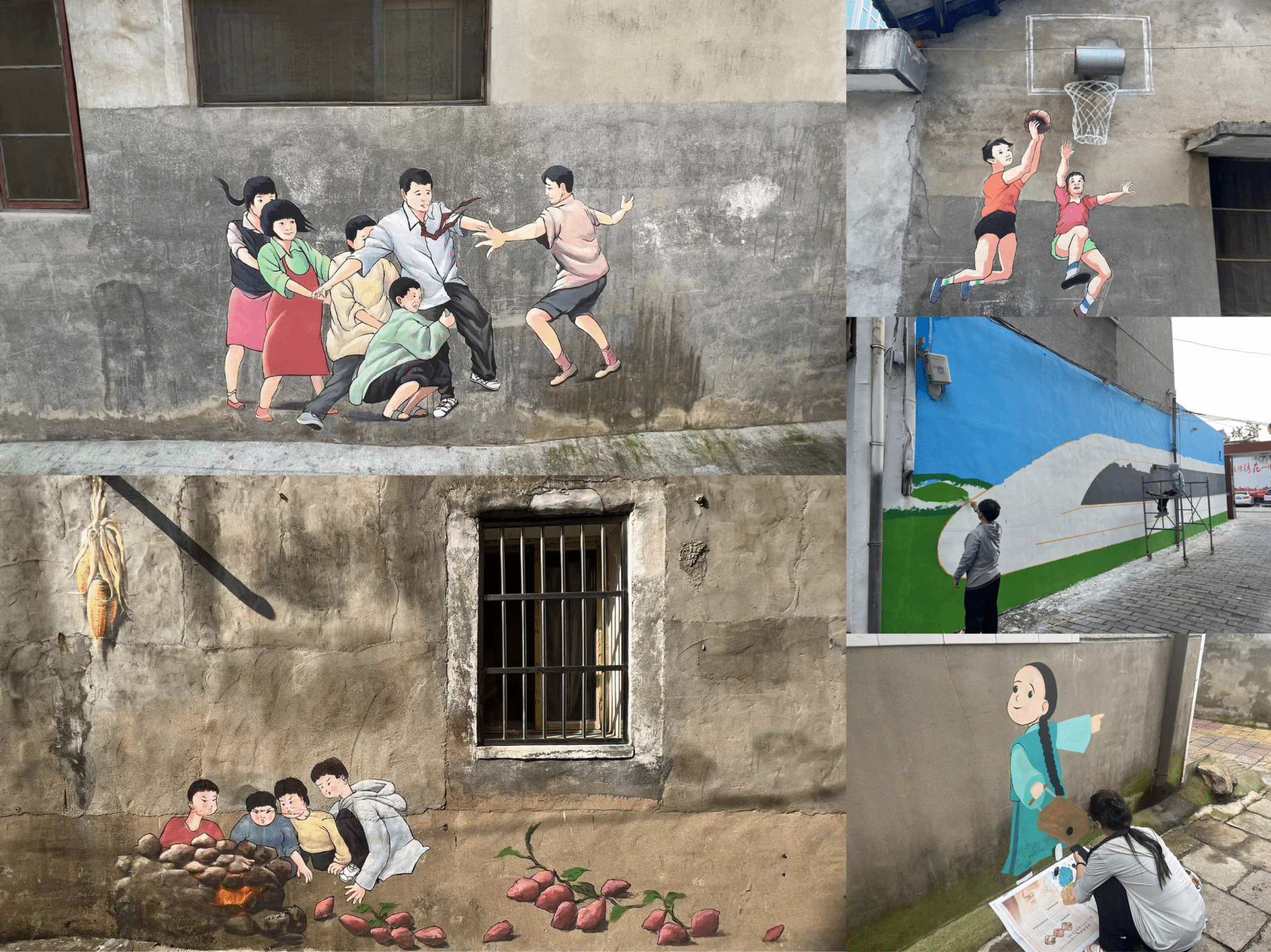 据实践团队长、美术学专业2021(3)班的冯海洲介绍,早在一个月前,团队成员便结合当地历史文化与人文风俗设计墙绘方案,墙绘内容以“老区街景”为主题,涵盖地标建筑、日常生活、童年记忆等多种“复古”元素。“希望通过特色墙绘进一步挖掘老区文旅资源,赋予老区文化新的生命,让老区文化在市民心中‘活’起来。”