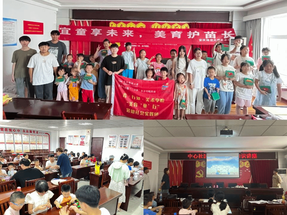 近日,bevictor伟德国际青•行知“美育‘童’行”暑期社会实践团前往安庆市宜秀区大龙山镇中心社区开展了暑期“三下乡”社会实践活动,团队成员立足学科专业特色,将红色文化与艺术相结合,开设系列暑期艺术课堂,带领社区近30余名儿童感悟艺术魅力,传承红色基因和优秀传统文化。