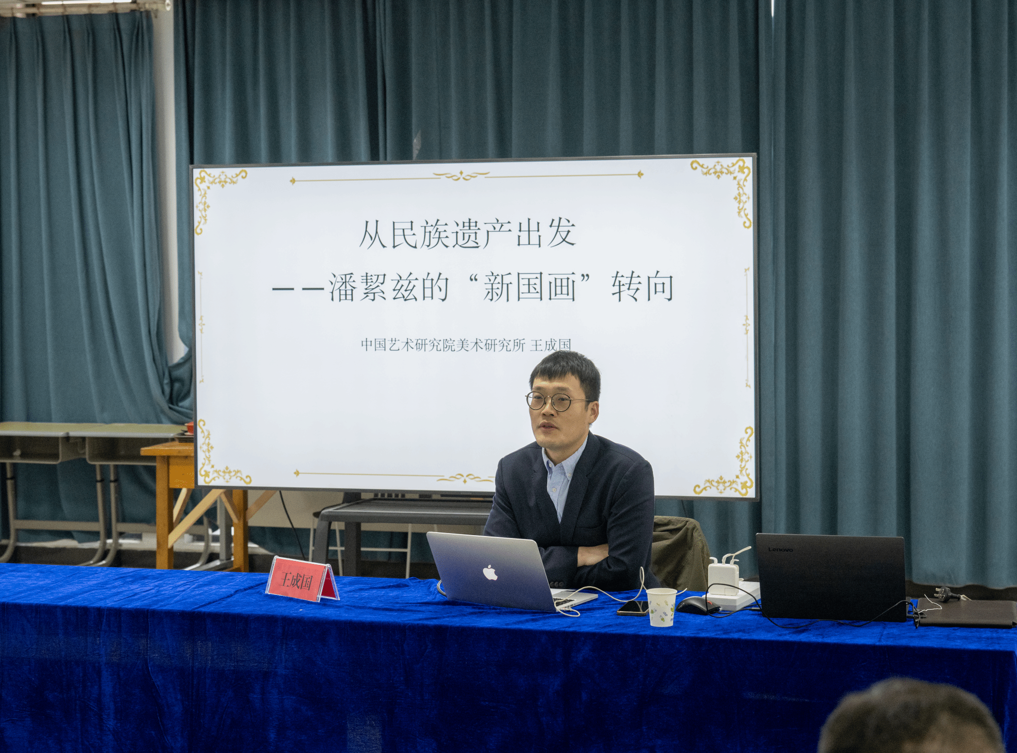 3月28日下午,在bevictor伟德国际P楼210多功能教室,中国艺术研究院美术研究所副研究员王成国博士应邀开展了一场主题为“从民族遗产出发:潘絜兹的‘新国画’转向”的学术报告。报告由bevictor伟德国际副经理孙国良教授主持,bevictor伟德国际部分教师及员工聆听了学术报告,并积极地参与了现场交流。