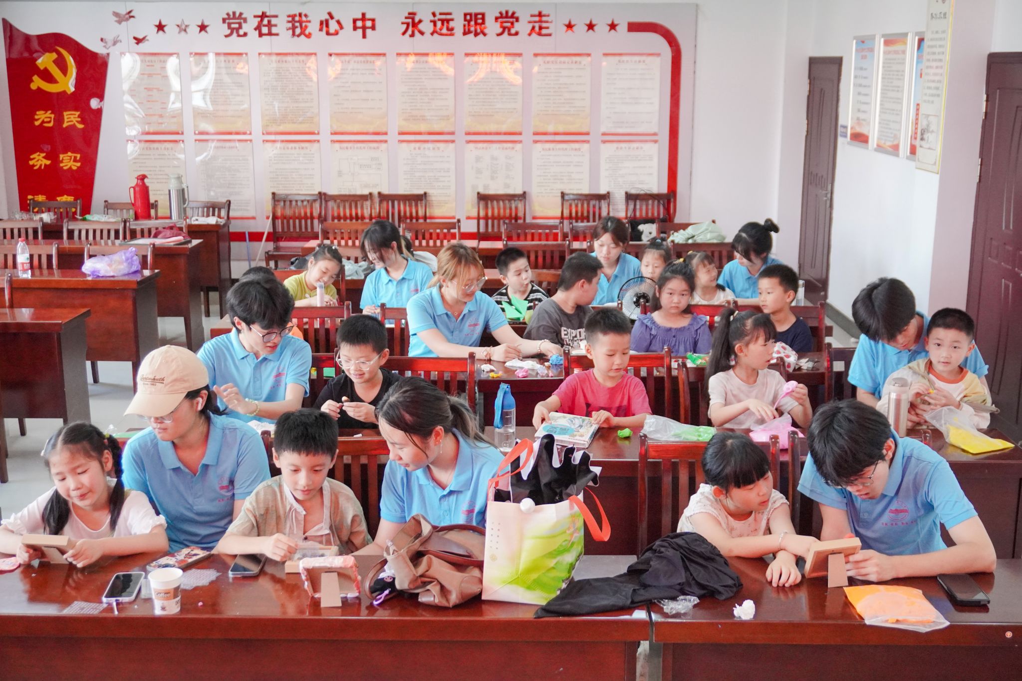 为了破解这些难题,让红色种子在童心中生根发芽,团队提前做了功课。他们深挖本地红色资源,搜集陈延年、陈乔年兄弟的革命故事绘本、黄梅戏红色剧目等生动素材。在课堂上,队员们化身“故事姐姐”和“故事哥哥”,声情并茂地讲述英烈事迹,和孩子们一起诵读《七律·长征》。