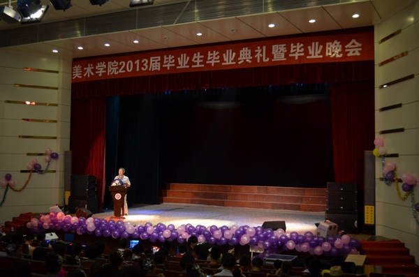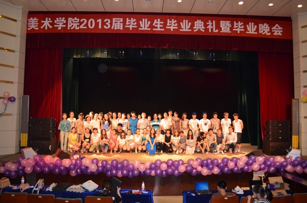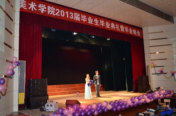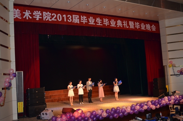 伴随着青春动感的开场舞《Invader》,晚会正式拉开序幕。一曲《惊鸿舞》轻盈、娟秀、优雅至极,美得让人赞叹不已;奔放妩媚的肚皮舞《鼓舞》让现场掌声、尖叫声不断;婀娜多姿的古典舞《风酥雨忆》让人目不暇接;歌曲串烧模仿秀给现场的观众带来不小的震撼,仿佛置身于明星演唱会的现场;相声《吃元宵》精彩绝妙的表演赢得了热烈的掌声;歌曲情景剧《致我们逝去的青春》,让大家感受到了青春的美好;动感火热的舞蹈《black Queen》因演员们高难度的动作技巧和丰富的肢体语言而引爆全场;黄梅戏表演《情稠意更稠》让大家充分体会到黄梅戏的魅力和风采;小品《扫地》取材于老员工的日常宿舍生活,反串的惊艳亮相,逗得现场观众捧腹大笑,赢得了满堂彩,而最后小品情节的主题升华令同学们不禁动容……歌曲《同桌的你》抒发了毕业生离别前的留恋和伤感;诗歌朗诵《再见了,我的大学》细数了大学四年的悲欢喜乐,刻画了美院员工的学习和生活经历,寄托了对母校的不舍和赞誉;大屏幕上播放着专门为2013届毕业生准备的VCR,再现了四年来一个个熟悉的场景……现场师生心中泛起阵阵涟漪,毕业生们共同回忆起携手相伴的青葱岁月,不禁潸然泪下。晚会在毕业生大合唱《朋友》深情的歌声中圆满落幕。熟悉的旋律,祝福的歌词,唱出了毕业生对母校的不舍和眷恋,也唱出了对未来的憧憬。
