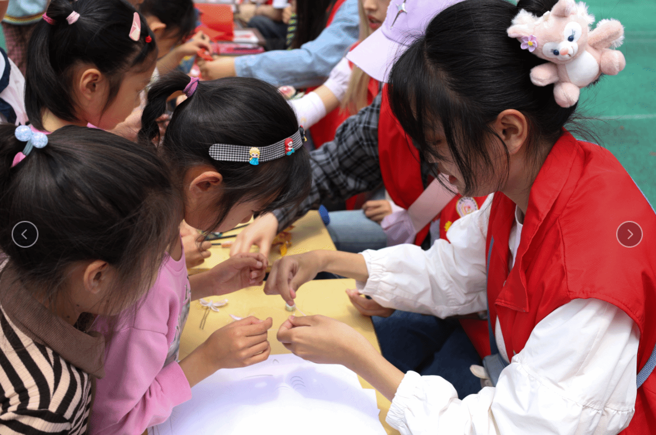 “此次科普艺术展以传承的视角出发,通过‘非遗+体验’的互动交流模式,让孩子们在动手制作中感受传统文化的魅力。”活动负责人、美术学专业2022(5)班的赵成亮介绍,本次艺术展分为缠花与剪纸两个展区,并安排员工志愿者为孩子讲解非遗作品,带领孩子进行缠花与剪纸的艺术体验。