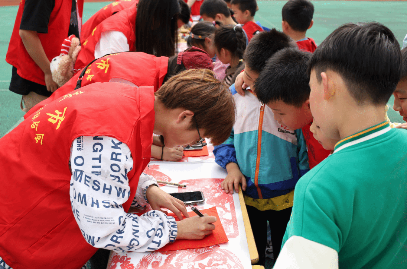 勾勒轮廓、加深线条、分区裁剪……设计学类专业2022(3)班的张顺心提前在纸上画好“虎头”“牡丹花”等图案,供孩子们挑选制作。为了让文化知识更加深入人心,张顺心化身剪纸“小老师”,结合剪纸作品进行讲解,向在场员工介绍了剪纸的历史起源与发展传承。“剪纸作为非物质文化遗产是我们珍贵的财富,需要大家共同传承。”